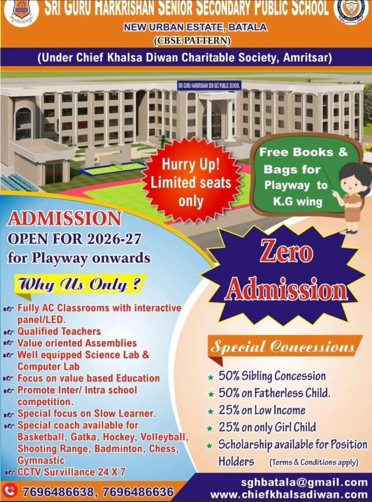 At Sri Guru Harkrishan Senior Secondary Public School, we believe that education is not just about learning facts — it’s about nurturing curiosity, values, and the confidence to face the future. Founded with a vision to provide holistic education rooted in Sikh values, SGHPS stands as a beacon of learning, discipline, and moral strength in Batala.